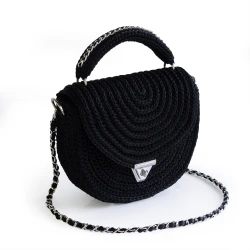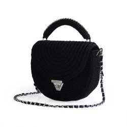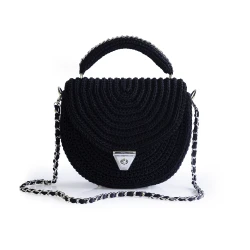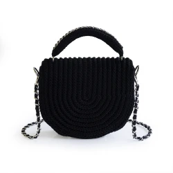 Diese handgefertigte Tasche von Designerin Stanislava Chimeva richtet sich an alle, die echtes Handwerk zu schätzen wissen. Gefertigt aus hochwertigem Polyester-Makramee-Garn, ist sie robust, strapazierfähig, schmutzabweisend und lässt sich mühelos mit einem feuchten Tuch reinigen. Das Innenfutter besteht aus edlem Satin und kann farblich individuell gewählt werden.