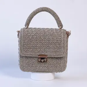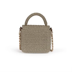 Diese handgefertigte Tasche von Designerin Stanislava Chimeva richtet sich an alle, die echtes Handwerk zu schätzen wissen. Gefertigt aus hochwertigem Polyester-Makramee-Garn, ist sie robust, strapazierfähig, schmutzabweisend und lässt sich mühelos mit einem feuchten Tuch reinigen. Das Innenfutter besteht aus edlem Satin und kann farblich individuell gewählt werden.